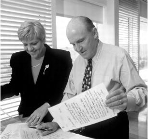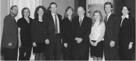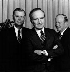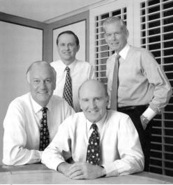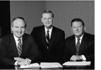 为1997年年报拍照,与副董事长保罗·弗雷斯科(左)、约翰·奥皮和吉恩·墨菲。照片由John Abbott拍摄