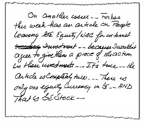 在新合同中,我将支付使用通用电气提供的所有其他设施和服务的费用,如飞机和公司公寓。我估计每年将向通用电气支付200万至250万美元的服务费用。换句话说,我使用这些服务不会给通用电气或其股东带来任何成本。同样不会给公司带来成本的是,我将根据需要提供咨询,并定期在通用电气的管理发展中心授课。事实上,我明天就会去那里。
