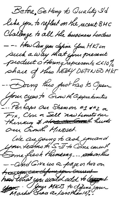 在试图找到一种方式来表达这些想法并与你们分享时,我们发现了一封由本迪克斯公司规划经理写给《财富》杂志编辑的精彩来信。我想与你们分享,因为它用我难以超越的语言,表达了我对通用电气这样的公司进行战略规划的许多想法。这封信是这样写的: