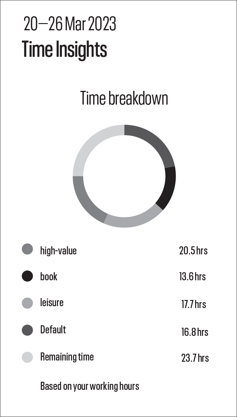 “我使用TimeBoxing来保持专注和高效。我将处理邮件的工作安排在一天中的两个60分钟时间段内,这样可以避免在会议期间被打断。我还为对健康有益的活动安排时间盒,比如起床后立即进行30分钟的力量训练,以及在一天开始前跑步。这帮助我保持良好的休息状态、健康和精力充沛,从而让我在工作中更加有效。 | — Lapo Mori,麦肯锡公司合伙人,美国科罗拉多州丹佛市 |