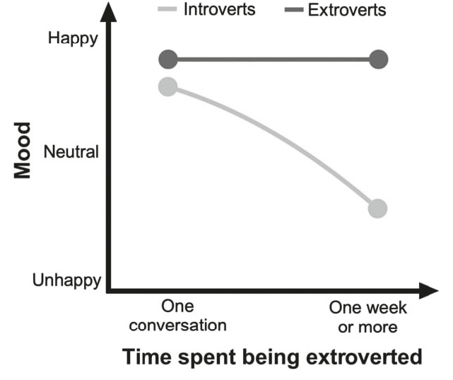从长远来看,优先培养这样的社交习惯可以累积成重大益处。科学表明,过着更社交化生活方式的人更快乐,甚至表现得更外向也能让人感觉更好。当大学生被要求在一周内表现得外向(即”健谈、自信和自发”)而在另一周表现得内向(“谨慎、安静和保守”)时,他们在表现外向时情绪大幅提升,而在像内向者那样生活时情绪明显下降(decline)。
