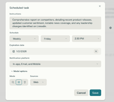 → 自动化重复性工作 - 将多步骤工作转化为简单的提示或计划任务,让 Perplexity 保持一切运转。